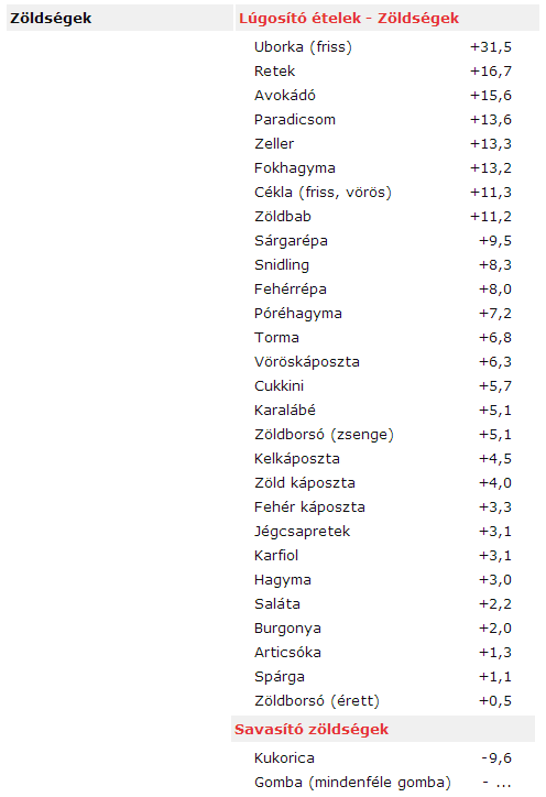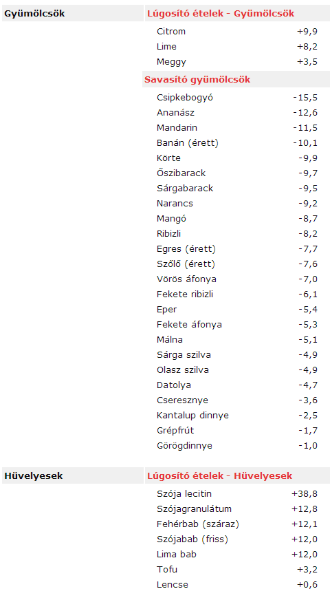 Élelmiszerek viszonylagos lúgosító vagy savasító hatása A túlsúly leküzdése érdekében létfontosságú lehet szervezeted sav bázis vagy pH egyensúlyának helyreállítása. Ebben az esetben pedig érdemes tudnod, hogy lúgosítás szempontjából, mit célszerű enned, és mit ajánlatos kerülnöd. A lúgosító ételek táblázata ebben nyújt neked segítséget. A hagyományos orvostudomány is egyetért azzal, hogy a megfelelő táplálkozás az egyik legfontosabb tényező egészségünk szempontjából. Egy tiszti főorvosi jelentés ekképp vélekedett erről: "Az élelmiszerekben található tápanyagok létfontosságúak az anyagcsere normális működéséhez, és amikor problémák adódnak, azok a táplálkozás megbomlott egyensúlyának, valamint más tényezők ártalmas közrejátszásának köszönhetőek. Egyetlen személyes döntés jobban képes befolyásolni a hosszú távú egészség esélyeit, mint bármi más: MIT ESZÜNK."